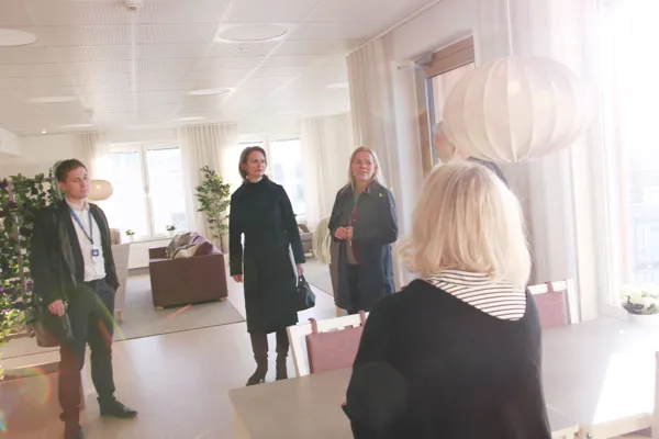 Madhuri Gogineni, överläkare på Stockholms Sjukhem, visar tillsammans med etikrådet som består av vård- och omsorgspersonal från Stockholms Sjukhems hur en etikrond går till i verkligheten. Från vänster Madhuri Goginei, Silya Molin, undersköterska, Rosita Lindskog, specialiserad undersköterska, Lisa Lüning Rusén, läkare, Birgitta Wiklund, specialistsjuksköterska, Helena Karlström, fysioterapeut.